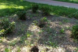 Fotopułapka Straży Miejskiej w Zgierzu oraz monitoring miejski zarejestrowały, jak w Parku Miejskim w Zgierzu od strony ul. 1 Maja, mężczyzna wyrywa z rabaty nowo posadzone dwa rododendrony.