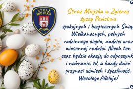 Zdrowych i pogodnych Świąt Wielkanocnych pełnych wiary, nadziei i miłości, radosnego wiosennego nastroju, serdecznych spotkań w gronie rodzinnym, oraz wesołego „Alleluja”, życzą strażnicy miejscy i pracownicy Straży Miejskiej w Zgierzu.