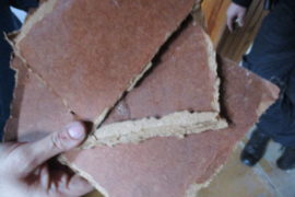 Palił w piecu, lakierowanym drewnem i płytami pilśniowymi