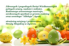 Zdrowych i pogodnych Świąt Wielkanocnych pełnych wiary, nadziei i miłości, życzą strażnicy miejscy i pracownicy Straży Miejskiej w Zgierzu.